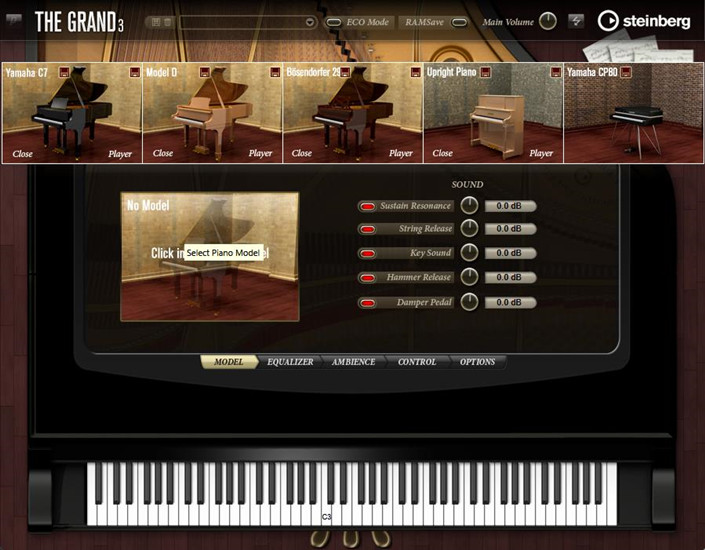 - **多样化的音色**:The Grand 3提供了五种不同风格和特点的钢琴音色,让您可以适应各种音乐类型和场合。您可以选择Bösendorfer 290 Imperial、Steinway D、Yamaha C7这三种经典的音乐会大钢琴,也可以选择Yamaha CP80这种复古的电动大钢琴,或者Nordiska Upright这种具有个性的直立钢琴。