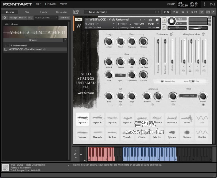 Westwood Instruments 的 Viola Untamed 是一个为 Kontakt 设计的样本库,它提供了丰富的独奏中提琴音色。这个库是他们 “Untamed” 系列的第四部分,旨在捕捉中提琴自然而富有表现力的声音。Viola Untamed 包含了三个八度范围内的 333 个独特的即兴演奏样本。这些样本从温柔细腻的低语到充满激情的呼喊,都能在您的音乐中找到合适的表达。