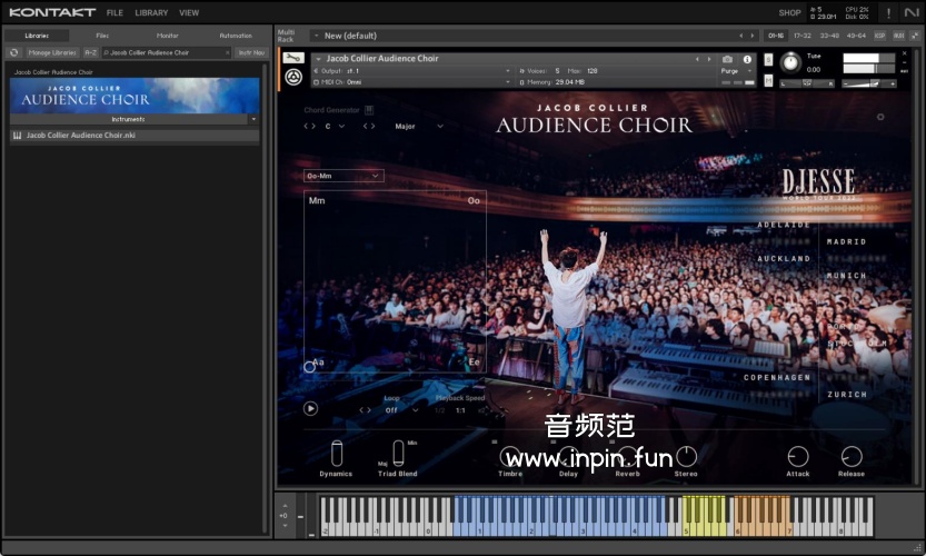 探索在世界上一些最具标志性的场所拍摄的合唱团样本。逐个音符制作自己的编曲,或使用预先录制的三和弦快速铺设丰富的音景。智能功能可帮助您深入了解和声,无论您的乐理知识水平如何。只需使用和弦生成器功能即可实现即时和声,或者使用 Triad Blend 轻松混合预构建三和弦的音调。