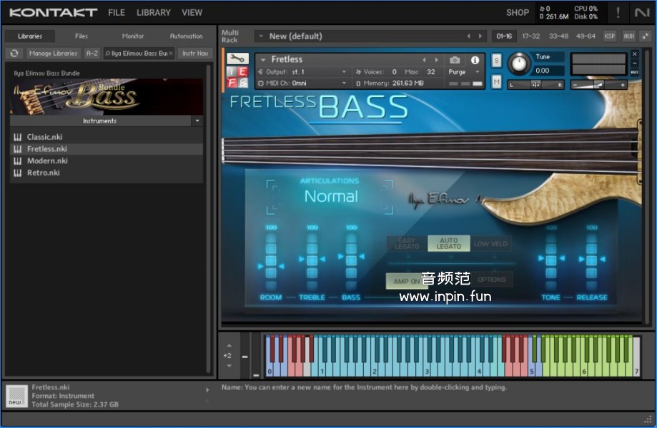 Ilya Efimov Bass Bundle 是一个包含四种不同风格的贝斯音源库,专为音乐制作和编曲设计。这个包含了 Retro Bass、Classic Bass、Modern Bass 和 Fretless Bass三个音源。每个音源都提供了独特的音色和演奏技巧,以满足不同音乐风格的需求。