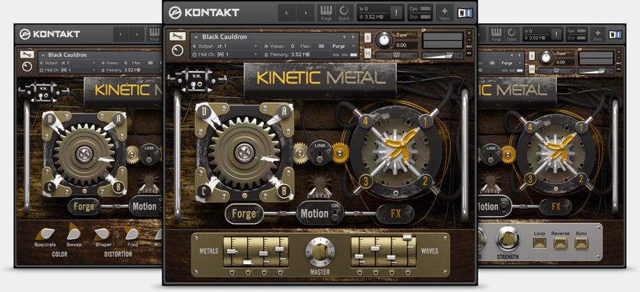KINETIC METAL 超过200个独一无二的多音层乐器皆由大量的 反传统金属物声源 制作采样而成。 每一个乐器音源都组合了四个采样,并使用四种人造波形,最终调节出四种具有独特风味的个性音色。