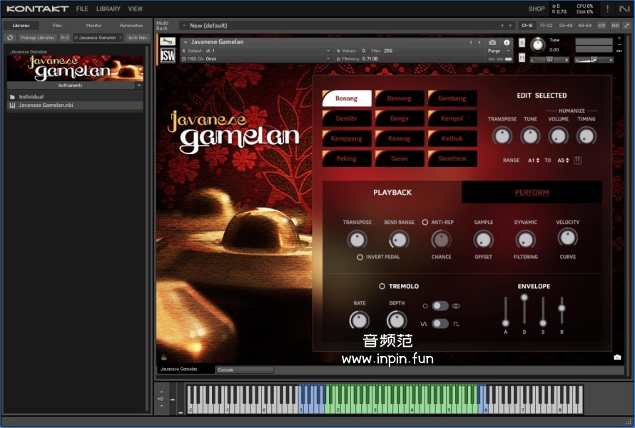 Javanese Gamelan 音色库收录了众多加美兰乐器的声音,包括各种金属打击乐器、竹制吹奏乐器和木制弦乐器等。这些乐器声音都经过精心录制和处理,保持了其原有的韵味和特色,同时也在音质上进行了优化,使其更加适用于现代音乐制作。