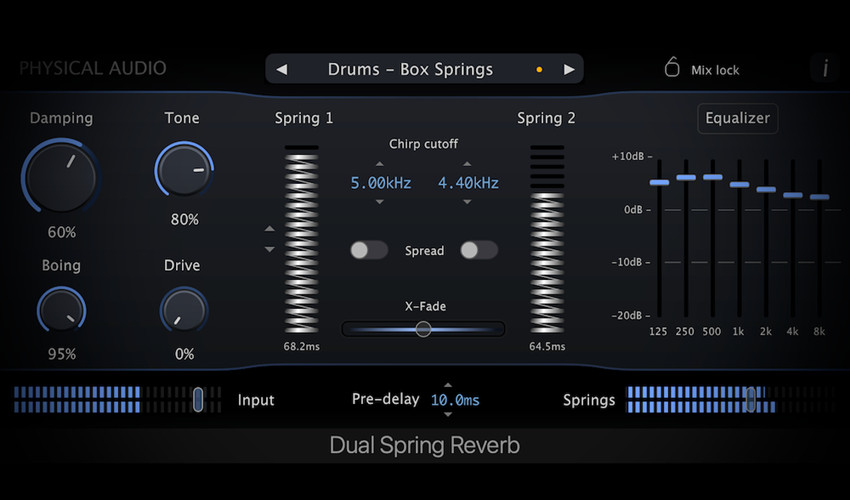 双弹簧混响是一个效果插件,它使用螺旋弹簧振动的物理模型来重现弹簧混响的经典声音