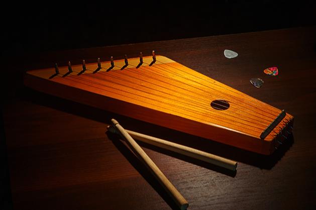 古斯利有两种主要类型:头盔形和翅膀形。当这个翅膀形状的古斯利被发现时,它的情况非常糟糕。然后小心翼翼地修复,填充和密封所有裂缝,表面上漆抛光,然后最后放好琴弦。就这样,这件乐器复活了,它的声音出奇地醇厚而柔和。在录制过程中,使用了各种拨片,棍棒,木槌和弹拨来试验声音,并且在每种特殊情况下都出现了一些独特的细微差别和音色。