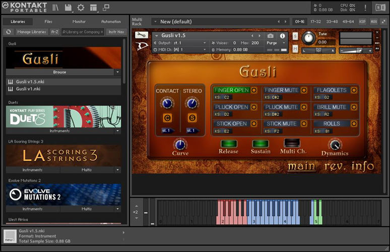 深度采样虚拟古斯利。需要完整版本的 Kontakt 5.1 及更高版本。