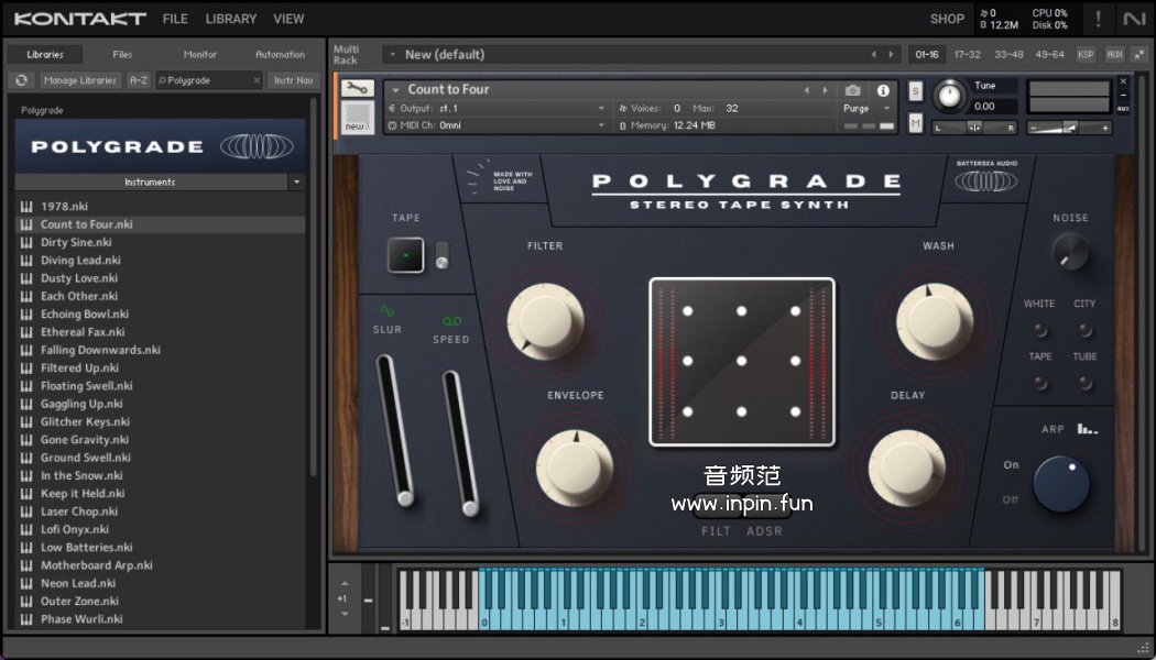 Battersea Audio 的 Polygrade Tape Synth 是一款独特的音频合成器,它使用从硬件合成器录制的波形,而不是传统的数字振荡器。这些波形经过磁带录音机降解处理后,再被置入 Polygrade 中。为了进一步增强磁带声音的效果,预设使用了多种输入样本。Polygrade 中的每个声音都通过一系列模拟设备运行,最后通过复古磁带录音机添加了一丝稀有的不可预测性。
