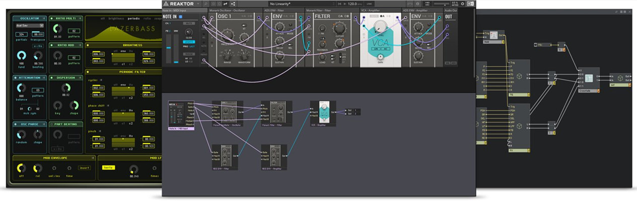 REAKTOR 就像是一颗永动的心脏,一刻不断地向多种合成技术提供能量,如 Native 的 RAZOR 与 MONARK,以及来自第三方的合成器作品,如 Twisted Tools、Tim Exile、Blinksonic 以及更多 它是专为声音创造而设的沙盒系统 - 能够允许你进行无限制的声音实验,探索出全新的声音走向。 简而言之,REAKTOR 能够让你自行建造乐器,并还原出你心中所想的声音。 这是现存的乐器都不能够做到的事情。