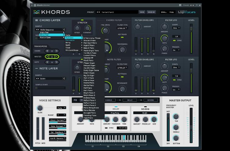 Khords的核心是两个“振荡器”,它们分别播放来自Loopmasters丰富采样库中的315个样本之一。你可以从大调、小调和单音类别中选择,也可以浏览任何适合你的乐器组合。 Khords还具有强大的合成引擎,可以实时调整样本的音高和时间,提供12种滤波器类型,包括包络、LFO和效果器,让你的声音更具特色。