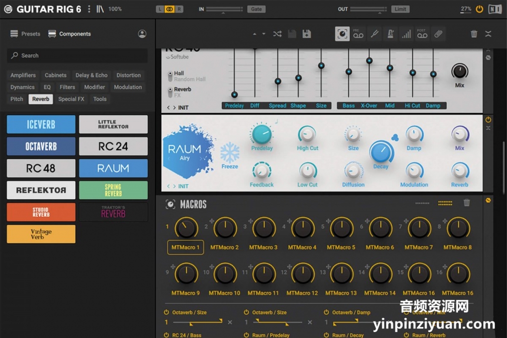 GUITAR RIG 6 PRO是一个多效果机架和放大器模拟器,用于快速,直接地创建和试验音频。 可以将它视为您自己的工作室,只是拥有更多的空间,更少的笨重的前置放大器和更大的灵活性。 设计独特的处理链以自定义您的音色,为吉他,贝斯,弦,鼓,合成器等所有事物增加空间,温暖和个性。