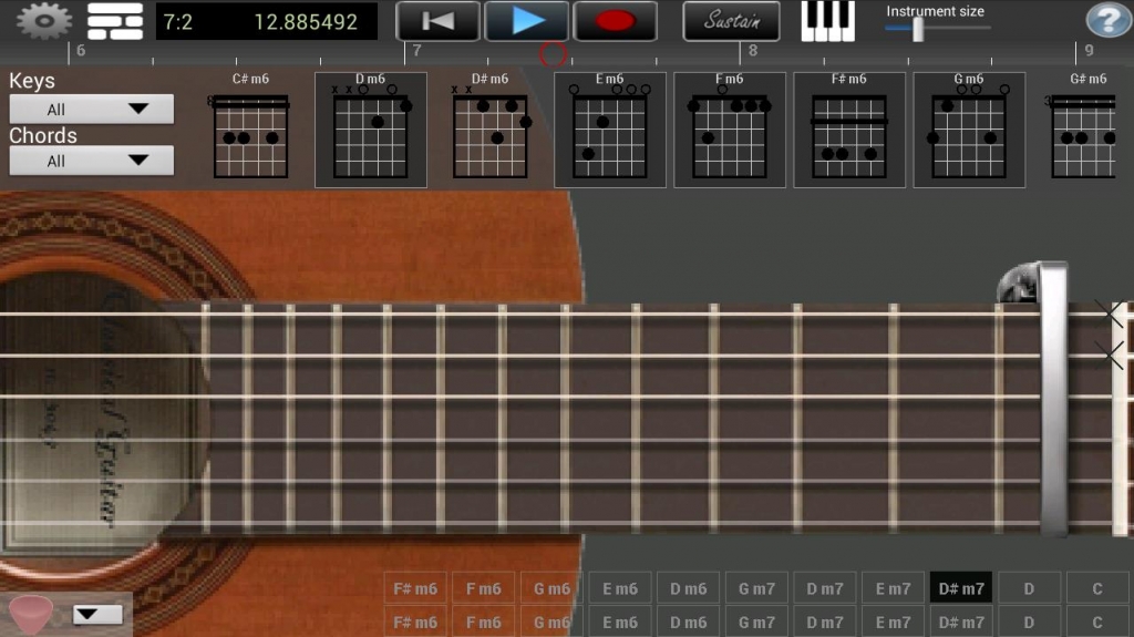 吉他Pro 7的功能已扩展到包括9和10弦吉他的指法编辑。 和弦图和指板也适应这些乐器。 因此,Guitar Pro 7现在可以编辑3至10弦乐器的指法。