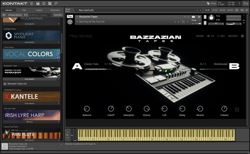 Native Instruments Play Series Bazzazian Tapes 是一款基于 Kontakt Player 的音色库,它收录了德国嘻哈制作人 Bazzazian 的个人音乐档案中的各种旋律乐器,包括合成器、键盘、原声乐器等。