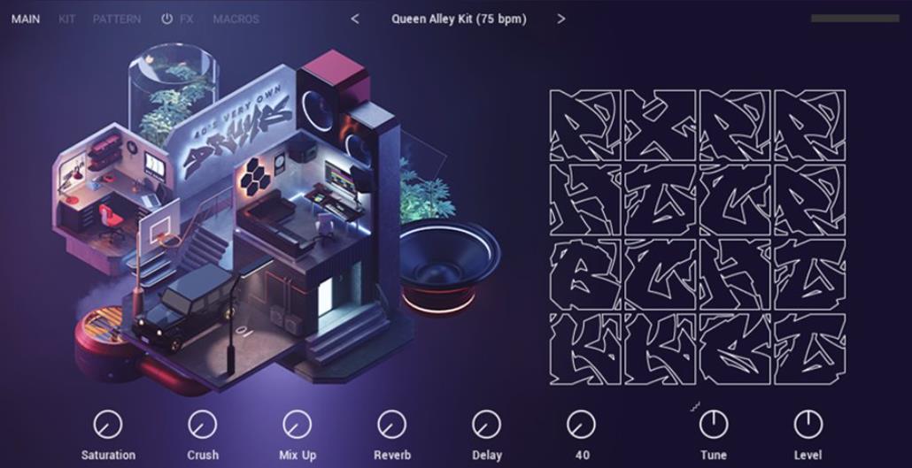 40’S VERY OWN DRUMS 提供高品质的鼓声,由嘻哈真正的现代革新者之一 Noah “40” Shebib 打造。底鼓、clap、踩镲的每一个动作都完美地融合了40年代特有的风格,从慵懒的、忧郁的到干脆的、有力的鼓声应有尽有。使用精心制作的鼓组或者众多的内置 pattern 来即时制作鼓点。这个乐器配具有易于使用的控制功能和一系列创造性的效果器,此外还有专用的“40”宏控制让你可以进一步营造“水下”氛围。