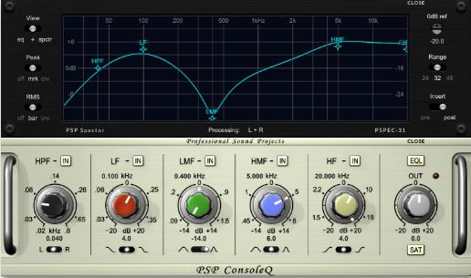 - 31段频谱分析仪:PSP ConsoleQ v. 2.0.0还新增了一个31段频谱分析仪,可以实时显示输入和输出音频的频谱,并且可以在分析仪的面板上调节频率曲线。