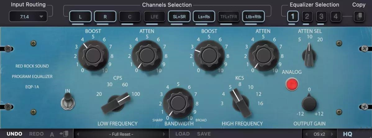 使用 EQP-1A 节省时间并避免繁琐的手动解决方法,经典程序均衡器插件从头开始设计,可在沉浸式混音环境的中/侧、立体声和对象、床(固定通道)上快速、高效地工作。