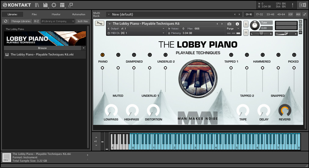 The Lobby Piano Playable Techniques 是一个由 Man Makes Noise 制作的钢琴音色库,它包含了10种不同的演奏技巧和风格。