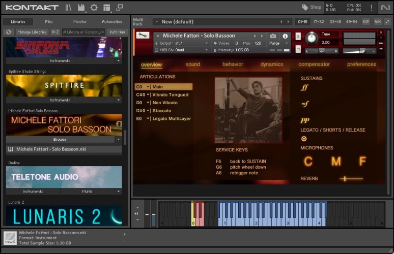 Fluffy Audio Michelle Fattori Solo Bassoon 是一款专业的巴松管音色库,由意大利著名的巴松管演奏家 Michelle Fattori 演奏录制。这款音色库采用了 Kontakt 5.5.1 或以上版本的采样引擎,提供了三种不同的麦克风位置(近、中、远),可以根据需要混合出自己的声音。这款音色库还具有以下特点: