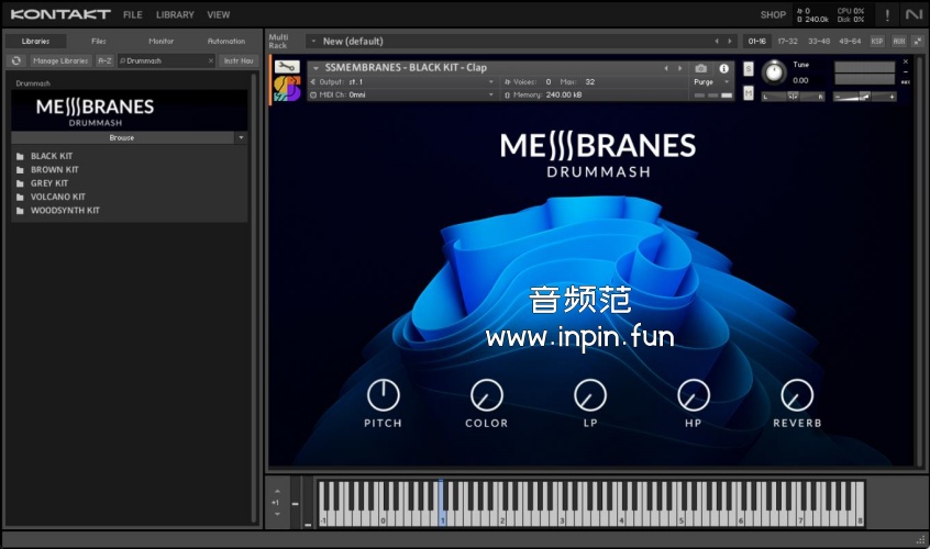 SyrinxSamples 的 Membranes: DrumMash 是一个基于 Kontakt 的样本库系列,旨在扩展您的音乐调色板。这个库包含 5 种不同、最受欢迎的鼓机套件(超过 800 个样本),您可以使用它们来创作现代电子鼓部分,或者创造性的电影打击乐纹理。您可以通过 Pitch 调整声音的音高,通过 Color 旋钮改变声音的本质,通过 LP 和 HP 滤波器创建特殊的音调,或者通过特殊的 IR 预设和 Reverb 旋钮增加维度。