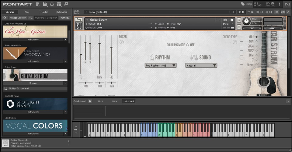 Splash Sound Guitar Strum KONTAKT需要Kontakt 7.5.2或更高版本的完整版才能运行。它不会在免费的Kontakt Player中工作。