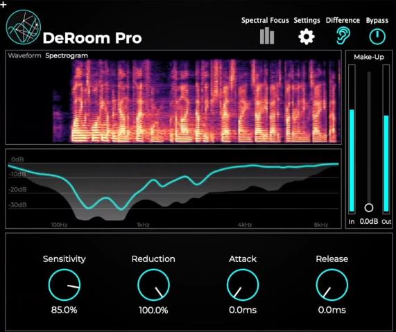 DeRoom 是一个基于机器学习的音频插件,用于实时减少或删除混响和房间共振。人工神经网络已经在许多不同的房间场景中进行了训练,以便能够将直接声音与反射分量分开。自动检测混响尾部和回声,然后精确抑制或根据需要完全删除。DeRoom非常适合提高在非常混响的环境中录制的语音的质量和清晰度。