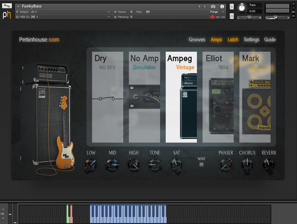 带有47个凹槽的凹槽,以老式的Fender Precision记录下来,涵盖了所有类型,包括12种变化:填充,滑动噪音,使凹槽更加逼真灵活。