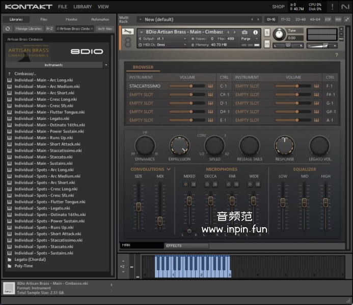 - 8Dio Century Artisan Brass Cimbasso 适用于各种音乐类型,包括古典音乐、爵士乐、流行音乐和电影配乐等。其深沉而宽广的音色可以为作品增添独特的色彩和氛围。