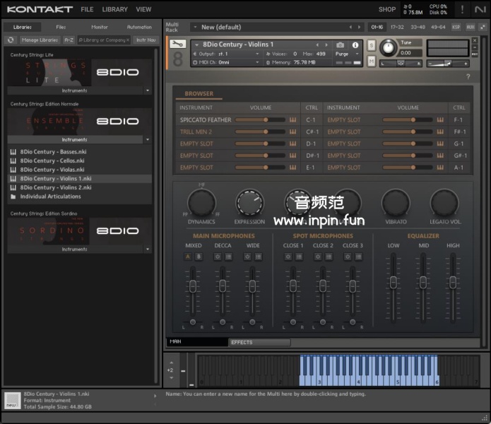 8Dio Century Strings Edition Normale 2.0 是一款深度采样的弦乐合奏音源库,它提供了极其丰富和表现力强的弦乐声音。这个2.0版本带来了一些重要的更新和增强功能,包括: