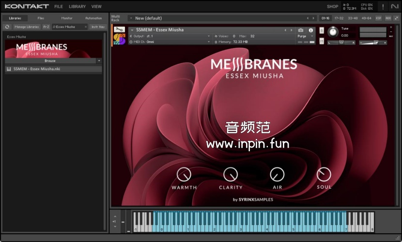 Membranes: Essex Miusha 提供了温暖而柔和的声音,通过独特的控制选项——Warmth(温暖)、Clarity(清晰)、Air(空气)和 Soul(灵魂),可以为音乐作品增添感性和情感深度。这个库是音乐家、制作人和作曲家的绝佳选择,他们重视声音质量,并希望以最高水平创作音乐。这不仅仅是一个乐器,它是创作美妙音乐的真正灵感来源。