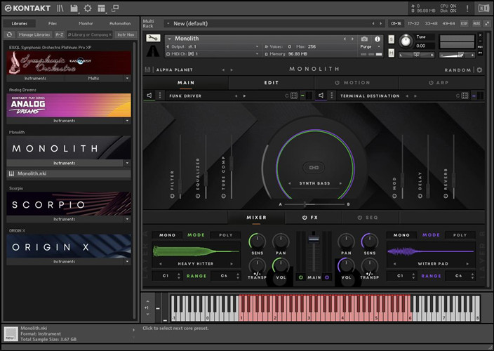 Monolith 是一款无限低音引擎,随时将您的音乐推向平流层的高度。利用数百个地面震动预设来快速剪切混音,或深入研究参数以雕刻完全属于您自己的低音。使用 85 组高清贝斯、低音炮、管弦乐和合成器样本中的任何一组,或导入您自己的样本以获得无限灵感。