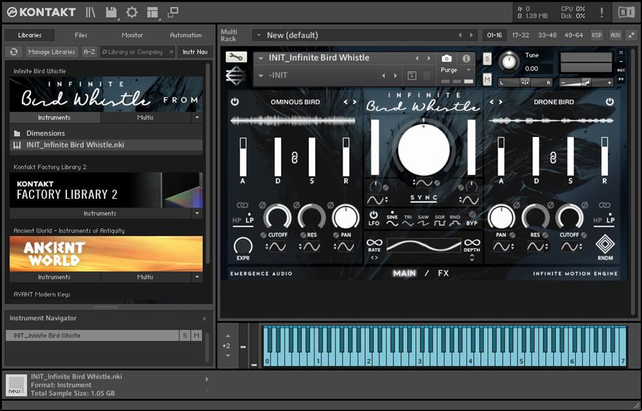 为各种类型创建打击垫、纹理、音景、无人机和脉冲,包括电影、电视和游戏配乐、当代音乐、新古典音乐、环境音乐、无人机音乐、声音设计、预告片音乐、新时代/冥想音乐等等。