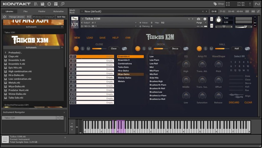 多年来,日本太鼓一直是世界各地配乐和音乐作品中不变的颜色。将我们的采样理念应用于Taiko家族的各种乐器,产生了一些非常有机和新鲜的声音结果,与我们的X3M打击乐引擎相结合,简直是一种乐趣。
