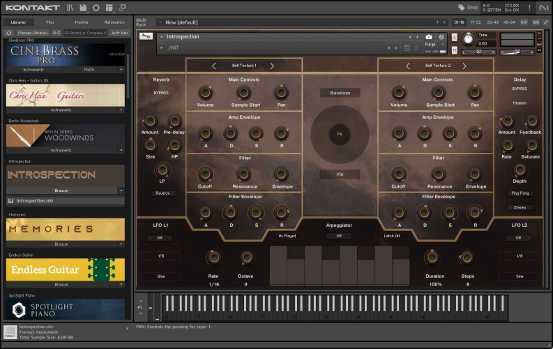 Triple Spiral Audio Introspection 是一款为 Kontakt 6 制作的音色库,它包含了 25 个快照(预设),由 250 个声源构成。这个音色库可以让你体验到柔和、氛围、低保真和电影风格的声音。