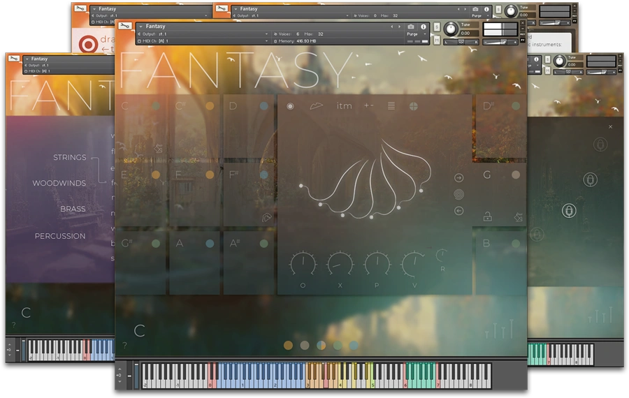 Sonokinetic Fantasy 提供了高质量的24位、44.1kHz的NCW格式样本,总共超过17,000个样本,占用约13GB的空间。它还包括一个定制设计的界面,带有乐谱显示、MIDI拖放功能、Time Machine Pro能力和清除系统。此外,用户可以通过变化热键、整个乐器的随机化、每个部分和每个主题的随机化来增加表现力和多样性。