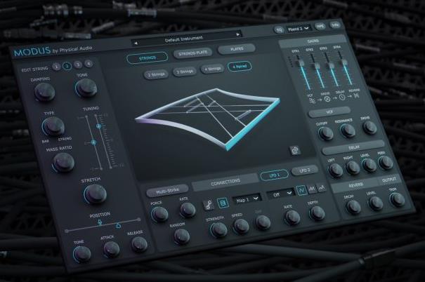 Physical Audio Modus 是一个音乐插件,可以用来制作基于物理建模合成的声音。物理建模合成是一种合成方式,它使用复杂的算法来模拟物理对象被操纵时产生的声音。它可以用来创建现实中的乐器的仿真,也可以用来创造新的和概念性的乐器,它们在真实世界中不存在。Modus 有以下特点: