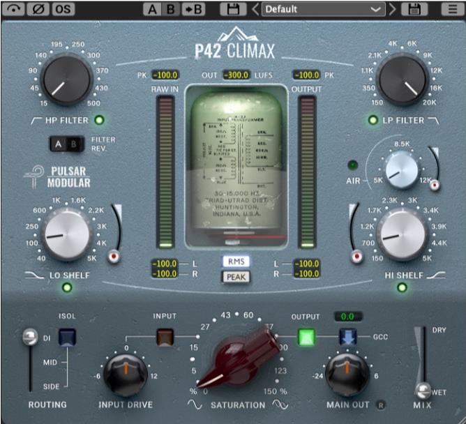 不要小看 P42 Climax 中的几个参数。它就像变色龙一样,能够同化许多不同的着色硬件设备,但从不打算复制任何一个! P42 Climax 在鼓总线、军鼓,当然还有贝斯吉他上都能发挥神奇的作用。在 2-bus 轨道上插入 P42,立即打开您的混音并暴露混音中隐藏的宝石。凭借其 Mid/Side 处理和详细的计量(峰值、RMS 和 LUFS)和自动。增益补偿工作流程,P42 非常适合您的母带信号链。