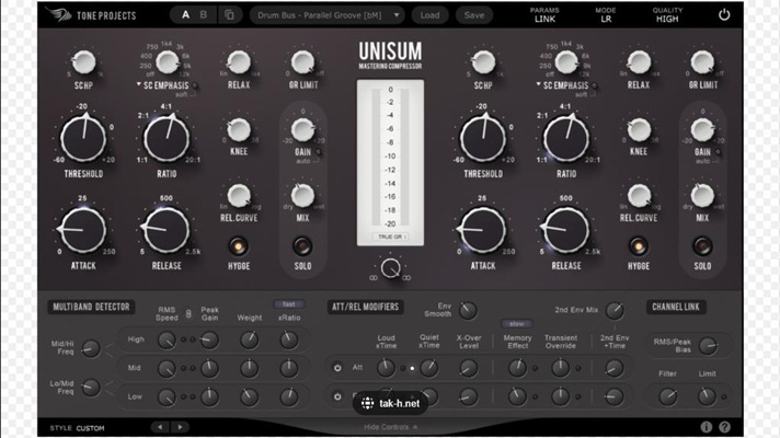 时,Unisum保持干净,直到你告诉它不要。接合 HYGGE 电路以添加母带级变压器和管保暖。HYGGE本质上是高度电平和频率依赖性的,它赋予任何声音微妙的重量和厚度。使用记忆效应,您可以模仿光电压缩器的程序相关行为,或者将其反转以获得非常不同的感觉。或者,您可能希望为某些低端咬合调快RMS检测器速度。