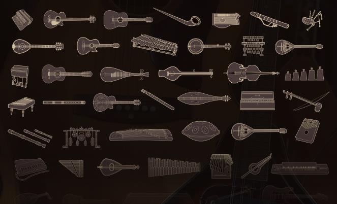 - 弹拨乐器:巴格拉马斯、班卓琴、中国琵琶、乌德琴、萨兹琴、贝斯、凯尔特十二弦吉他、乔古里等