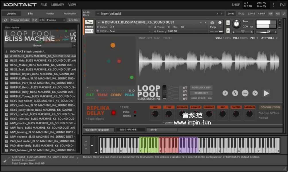 - Bliss Machine 允许用户将多种声音源层叠在一起,从而创造出丰富且复杂的音色。这些声音源可以是合成器声音、采样音色、环境音效等。