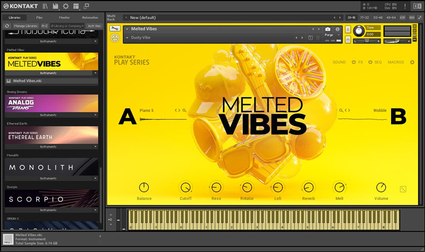 MELTED VIBES 是您制作 detune 旋律与 warped 律动的首选工具,它能够帮助你创造出激动人心的声波以及眼前一亮的乐段。 它内置有使用了传奇前级放大器和合成器所录制的 pad、pluck 与 key 声音源。 声音将与种类繁多的变形纹理层一同变化,让您的作品最大幅度地 bounce 起来。 从混响、合唱效果,到音序调制和特别设计的“melt(融化)”调节参数,你能够通过多种方式来为声音添加独特个性,从声音中榨取更丰富的潜力。