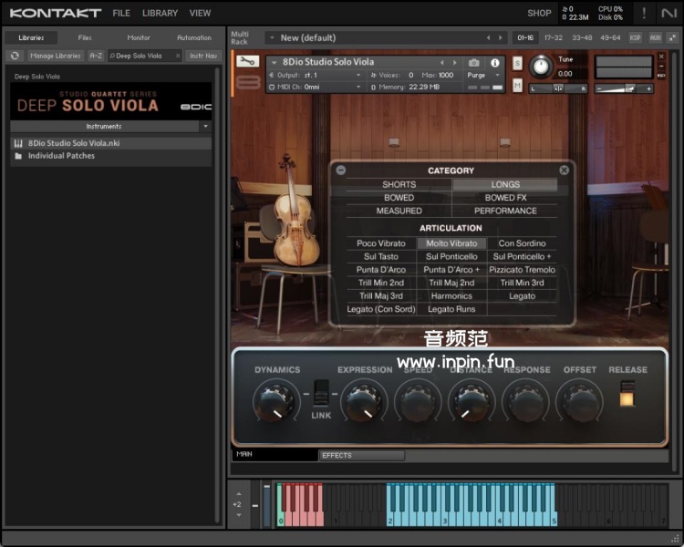 - 采样深度:这款音源包含了88种不同的深度采样技巧,总共超过20,000个采样。这些技巧包括多种真正的多音连奏、14种短音符、数十种弓弦技巧等。