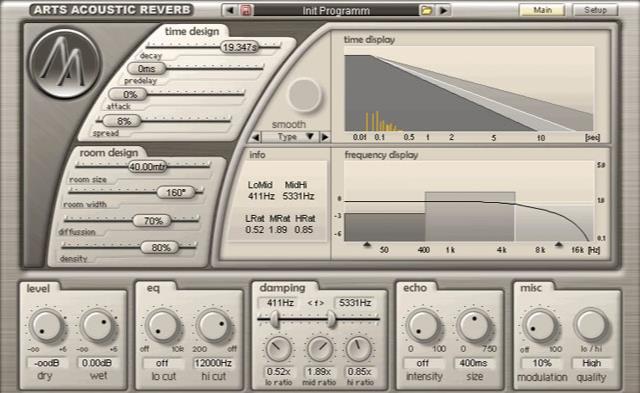 ArtsAcoustic Reverb是一款高品质混响,适合专业工作室的日常使用。该插件(与当前趋势不同)是一种非常先进但易于使用的算法混响,因此不涉及卷积。
