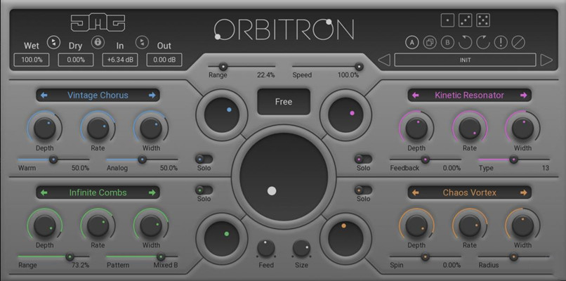 简单的调制可能是无聊和乏味的。但想象一下,您可以在四种不同的调制效果之间流畅地交叉淡入淡出,以便每个小节听起来都不同。或者将四种效果混合在一起,创造出独特的东西。这是只有Orbitron才能提供的方法。