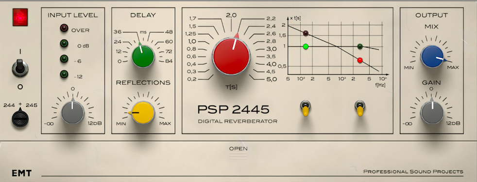 PSP 2445中实现的混响算法基于Barry Blesser博士(数字音频革命的祖父之一)设计的原始算法。感谢Barry博士的广泛咨询和支持,我们的算法听起来和原始算法一样好,插件可以得到EMT Studiotechnik GmbH的正式认可。