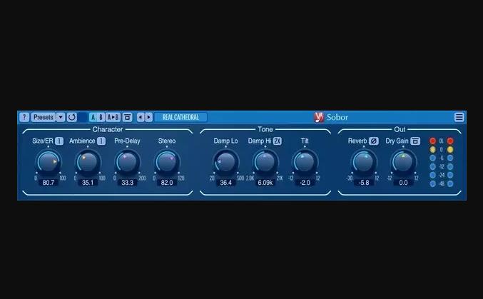 Sobor 适用于任何音源:人声、吉他、合成器、鼓、混音。这种混响是一种对 CPU 要求相对较高的效果:为了舒适使用,它需要更高端的处理器。