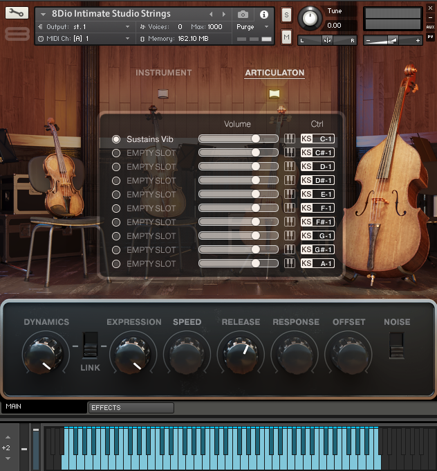 Intimate Studio Strings为您提供了组装任何您想要的弦乐部分的能力。有1-5名小提琴手,1-3名大提琴手,1-3中提琴和1或2个低音,有256个合奏尺寸。通过每个部分的单独选项,您可以调整平衡,平移,距离等。