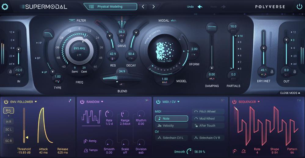多元宇宙超模态是一个强大的过滤器与现代的声音,将使您的音乐产生共鸣。它利用强大的模态滤波器重构普通的音轨,模拟从广泛的共振体建模的声音特征。与并行的状态变量滤波器和扩展调制系统相结合,单个音频信号可以被操纵成广泛的频率阵列,以创建闪烁的电影声景、脉动的节奏、带有谐波运动的衬垫或任何你能想到的东西。