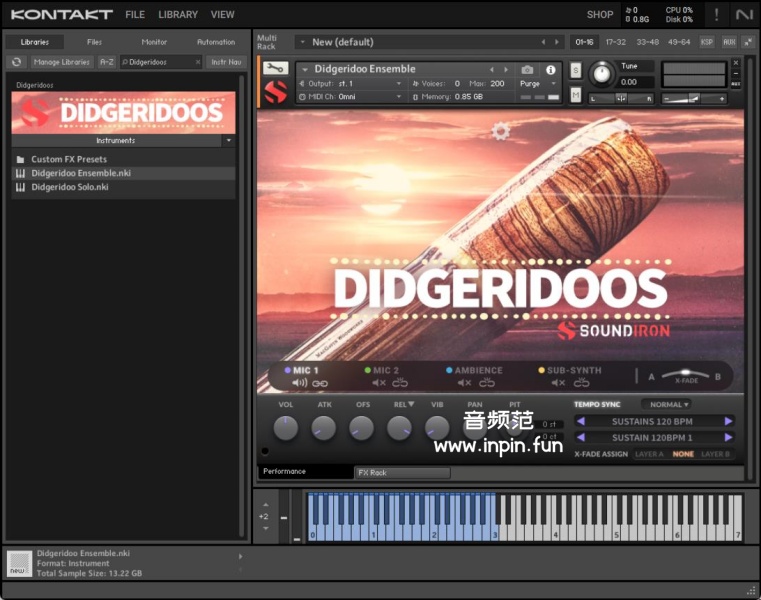 - Soundiron Didgeridoos 旨在为全球各地的作曲家和音乐家提供创造性的工具和新颖的音色。它兼容所有 NKS 标准的硬件,并支持 Kontakt 6 Player。