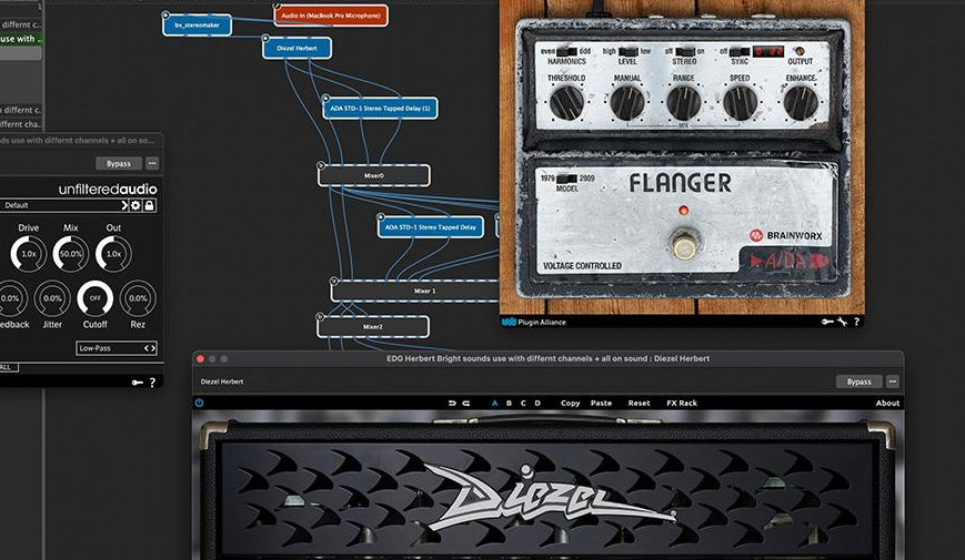 GP4的路由屏幕使您可以轻松地放入软件对象,从虚拟乐器到效果器,再到MIDI设备和音频接口,快速轻松地在它们之间建立连接。预测加载功能可让您智能地加载节目的某些部分,从而显着降低RAM和CPU使用率,因此即使使用粗糙的旧笔记本电脑,您也可以放心地执行。