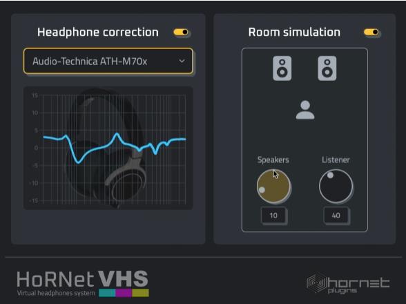HoRNet VHS(虚拟耳机系统) - 终极音频插件,可实现更好的耳机混音。我们的软件将频率校正和房间模拟应用于耳机,从而产生准确的混音,完美地转换为任何播放系统。我们的数据库中有 100 多种耳机型号,您可以确保获得最准确的频率响应。
