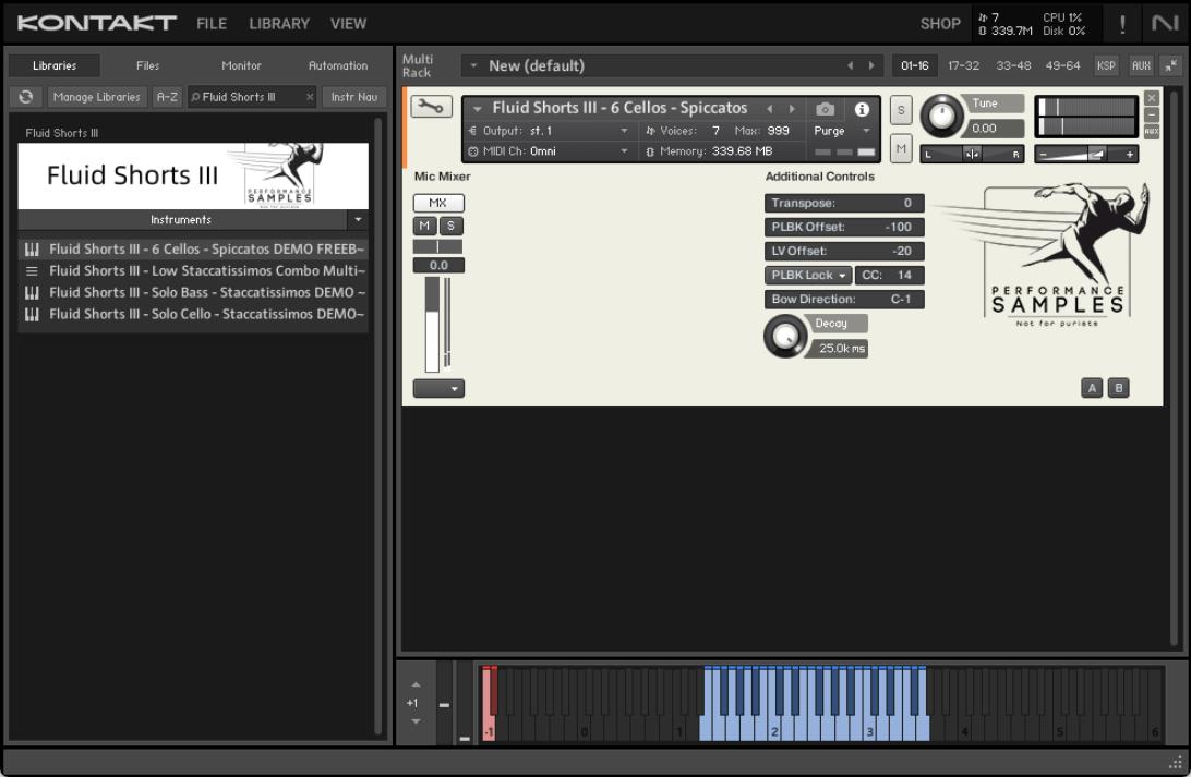 - Fluid Shorts III – 6 Cellos – Spiccatos DEMO FREEBIE(音域限定:E1 到 G3,C3 为中央 C)
