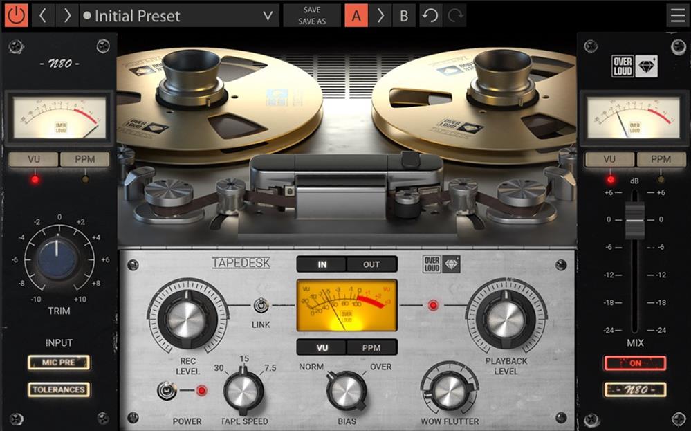 不同于一般的插件,Overloud Gem TAPEDESK 将磁带机和混音台作为一个整体来处理信号。信号首先进入混音台的前置放大器,然后被送入磁带机并被录制到磁带上。从那里开始,磁带被回放并再次进入混音台进行混合到其立体声总线。这样就可以重现模拟混音的完整体验。